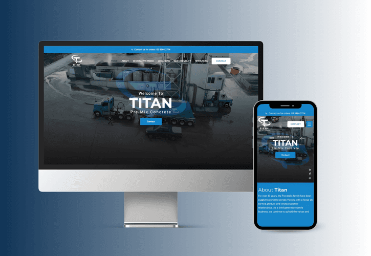 A clean, professional website highlighting Titan’s extensive concrete solutions, with clear navigation and a focus on their multi-generational legacy.