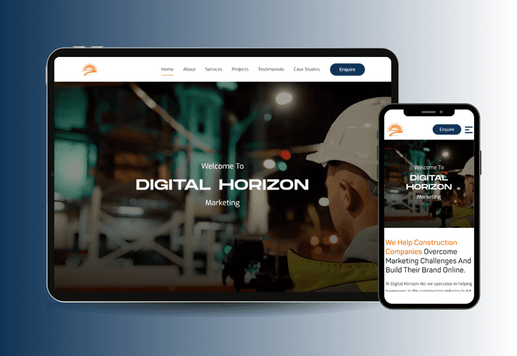 Our own platform, reflecting our expertise in digital marketing for the construction industry, featuring our services, projects, and client testimonials.