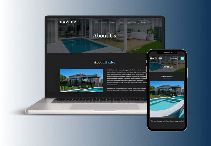 A sleek, modern site showcasing Hazler Pools’ luxury pool builds, emphasising their design-to-construct services and commitment to quality.